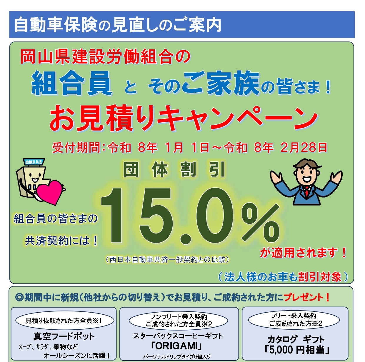 【団体割引15%適用】西日本自動車共済見積キャンペーンを実施します